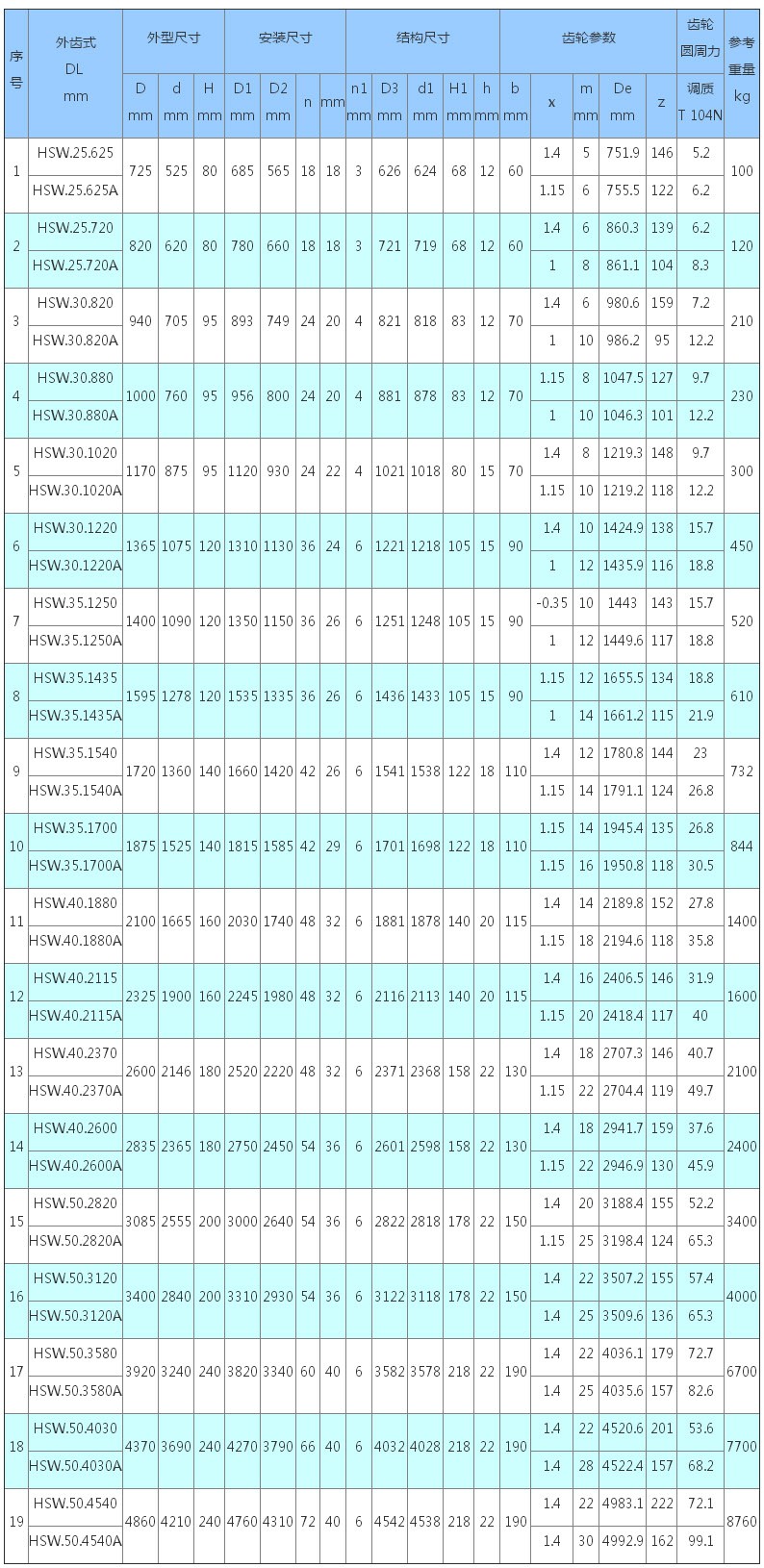 4、表內(nèi)變位系數(shù)均為外齒式設(shè)計(jì)。
